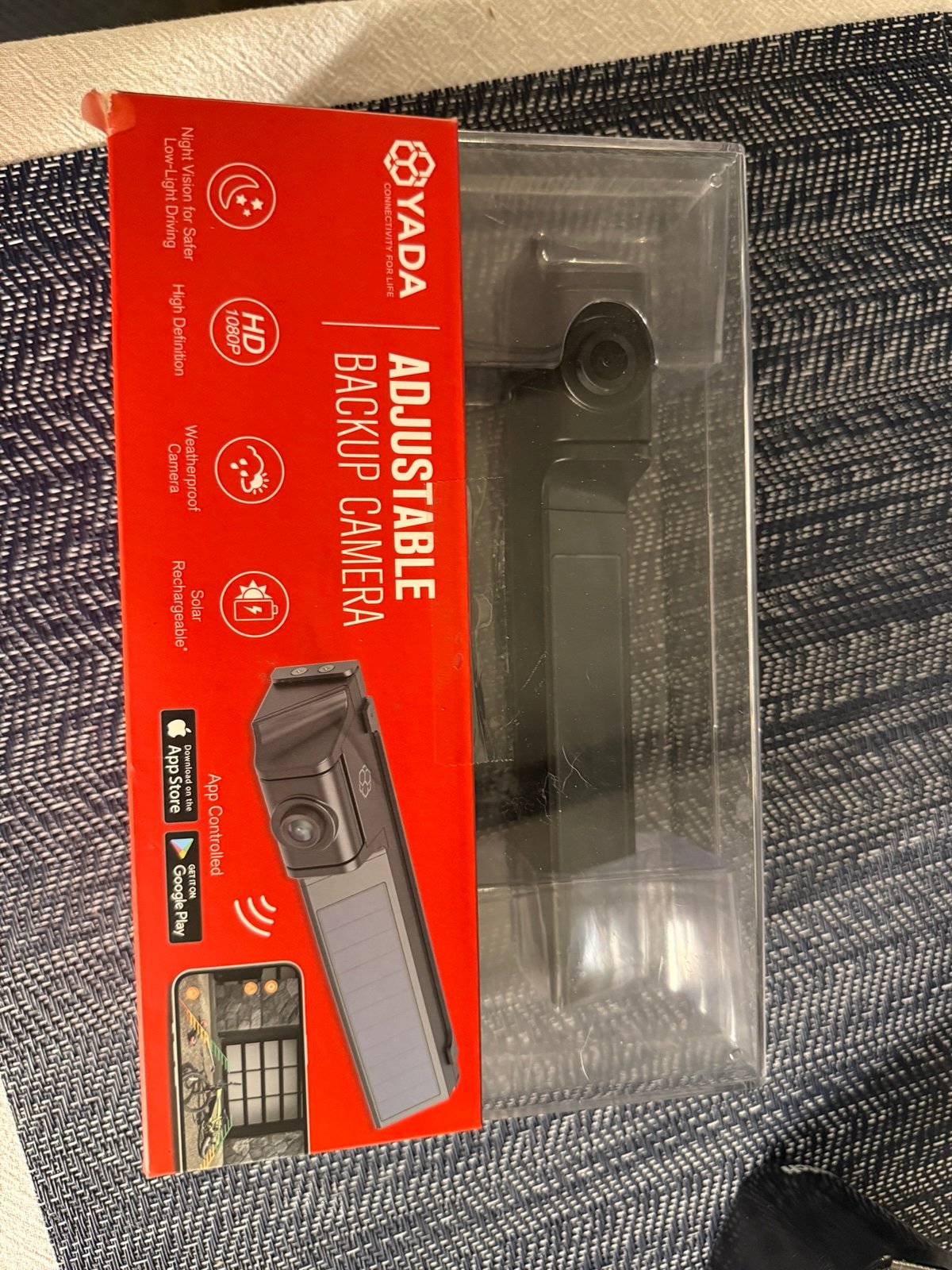 Connect via app on phone to backup camera. Product unused and comes with packaging.