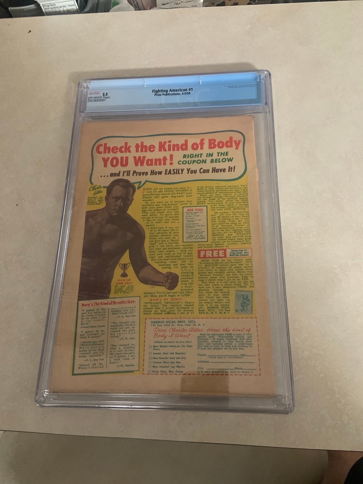 Fighting American 1 CGC 2.5 Jack Kirby Joe Simon. From 1954 . After Marvel's first revival of Captain America, Cap creators Joe Simon and Jack Kirby responded with another star-spangled patriot. Great collectors piece for all Marvel fans , Captain America