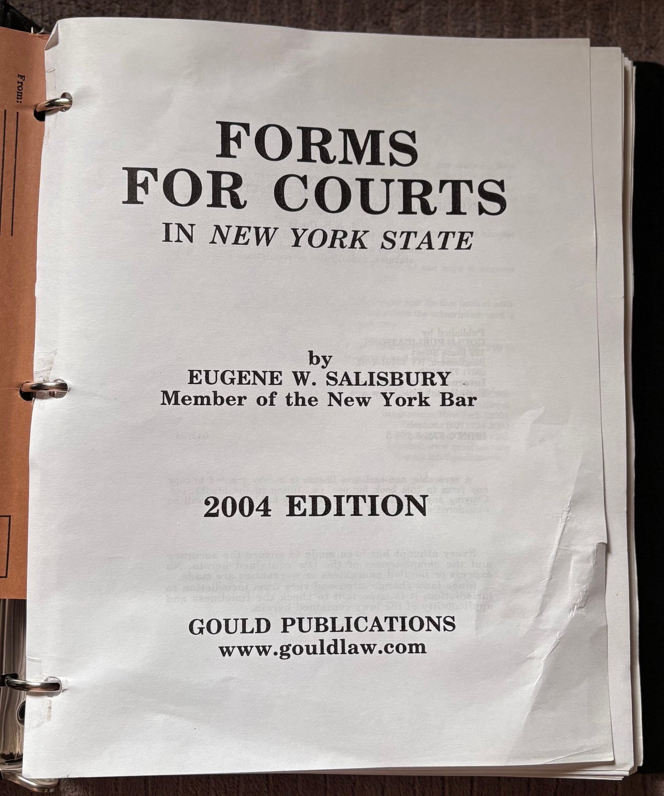 FOR SALE I HAVE A “FORMS FOR COURTS IN NEW YORK STATE” • BY EUGENE W. SALISBURY • MEMBER OF THE NEW YORK BAR • 2004 EDITION • GOULD PUBLICATIONS • PRE-OWNED • IN VERY GOOD CONDITION.