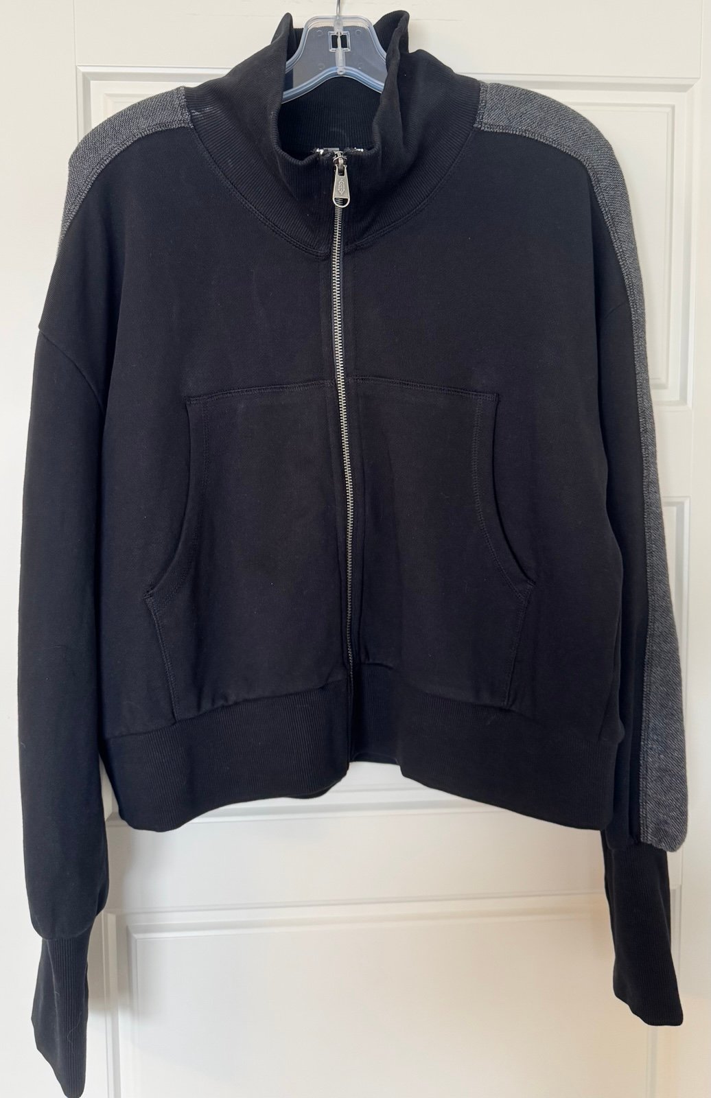 A ribbed stand collar tops this relaxed-fit jacket made of a breathable cotton blend to keep you moving with ease. Contrast stripes down the sleeves and across the back bringing sporty energy to this lounge-worthy piece.