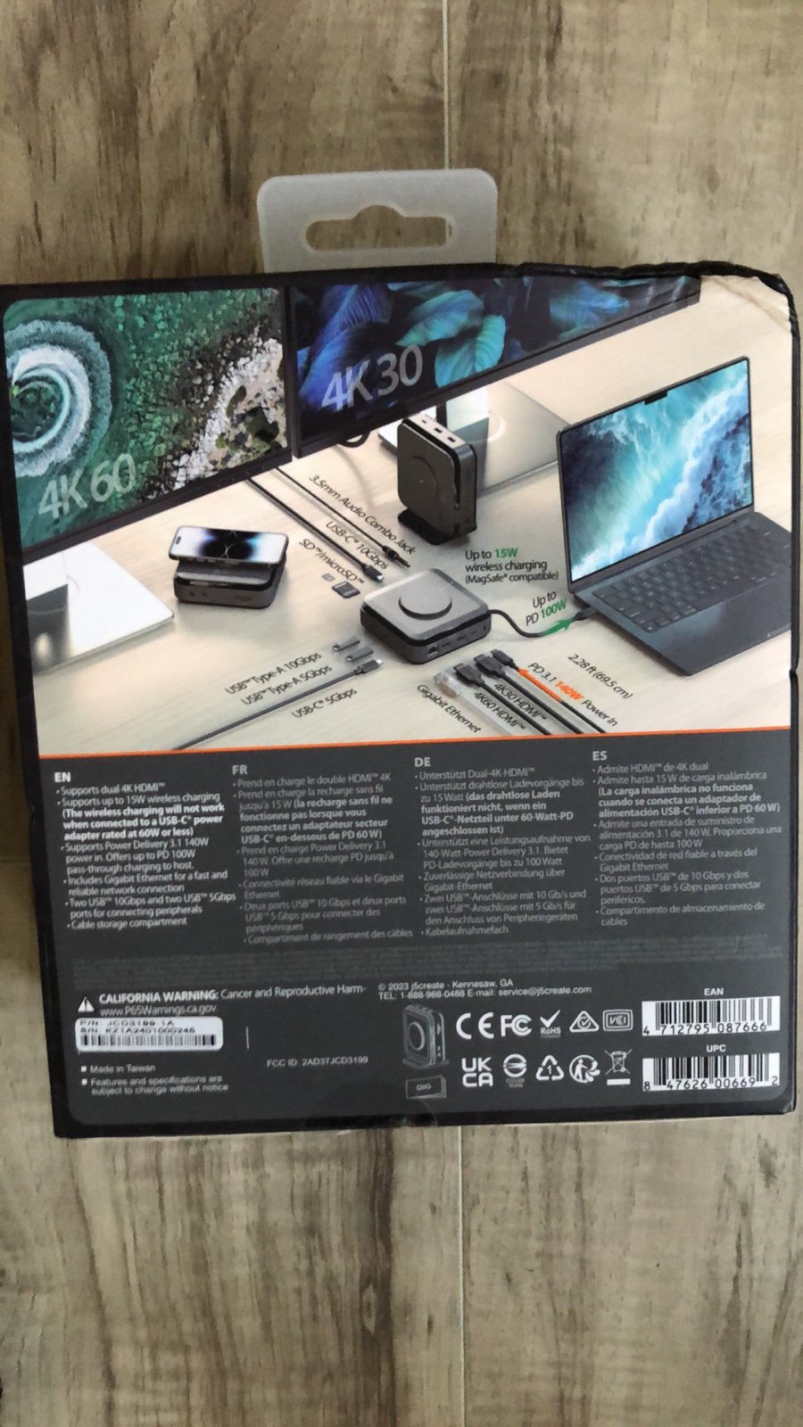This compact multi-port dock is ideal for office application, featuring everything from the essential two HDMI outputs, USB ports, Gigabit Ethernet, SD/microSD card reader, Audio Jack and an upgraded Power Delivery 3.1 specification. It comes with a mount for saving-space vertical placement and gives you the ability to connect your MacBook or other USB-C compatible laptops to a 4K monitor or TV. With USB Power Delivery 3.1 it’ll take you to a new flexible power application, you'll be able to charge your laptop and power your peripherals with a single USB-C power adapter even if your laptop only has one USB-C port. The top of the dock functions as a wireless charging pad that supports up to 15W fast charging. Access a wired network through the Gigabit Ethernet port for a fast and stable network connection. It is also equipped with a cable storage compartment which ensures an easy connection regardless of your USB-C port’s location. Power Adapter to support Wireless Charging Sold Separat