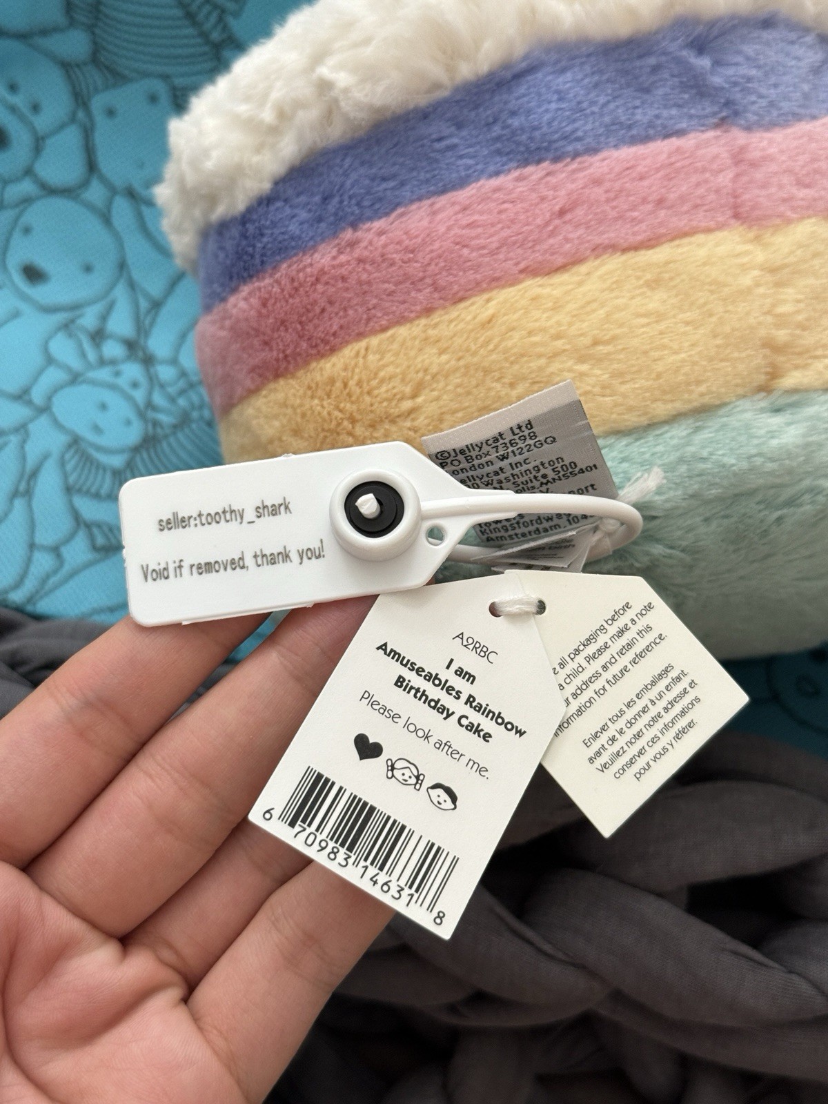 Due to the high demand of Jellycats, each plush will be attached with a plastic anti-tamper clasp. This is in place to ensure authenticity of the products I am selling.