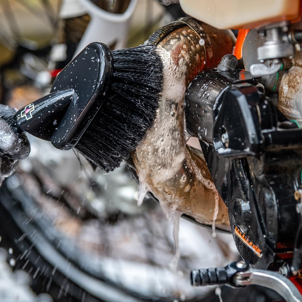 Looking for the perfect gift for the motorbike fanatic in your life? Or just a great value treat for yourself? Then look no further. Here at Muc-Off, we know that a clean bike is a fast bike. By cleaning your motorcycle regularly, you’ll keep muck and grime at bay which will make your bike more efficient and reduce the likelihood of mechanical problems. To help you out, we’ve developed a range of gnarly motorcycle cleaning kits that make bike maintenance a breeze. The Muc-Off Ultimate Motorcycle Cleaning Kit covers all the bases when it comes to cleaning, protecting and lubing your ride. This kit isn't style specific - so it’s jam-packed with all the essentials for any rider, from road rippers to dirt demons. The Ultimate Kit contains a bottle of our infamous pink Nano Tech Motorcycle Cleaner, our Motorcycle Chain Cleaner, a can of Motorcycle Protectant for post-wash protection, a can of our advanced Silicone Shine for the ultimate glossy finish ... and a can of All-Weather Chain Lube to prime your links for peak performance! As if that wasn’t enough, this kit comes loaded with a number of our handiest bike cleaning tools to help you tackle the post-ride grime fest. Please note that to maintain performance of all bike cleaning brushes, avoid use with boiling water and on hot parts. We recommend using warm water and allowing all hot parts to cool before use.
