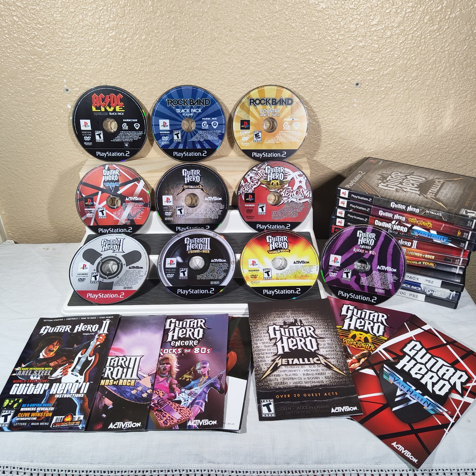 Previously owned Red Octane Wired Guitar (PLSGH) with Guitar Case for the Sony PlayStation 2 . You will also receive 10 GAMES to rock out with, including AC/DC, Aerosmith, Van Halen and Metallica!!!