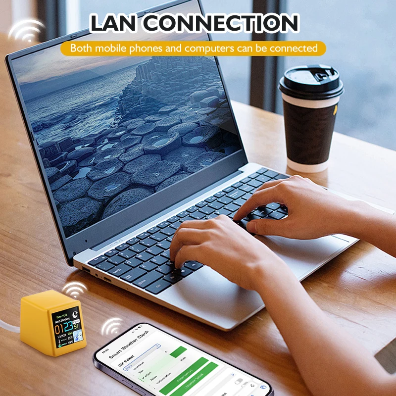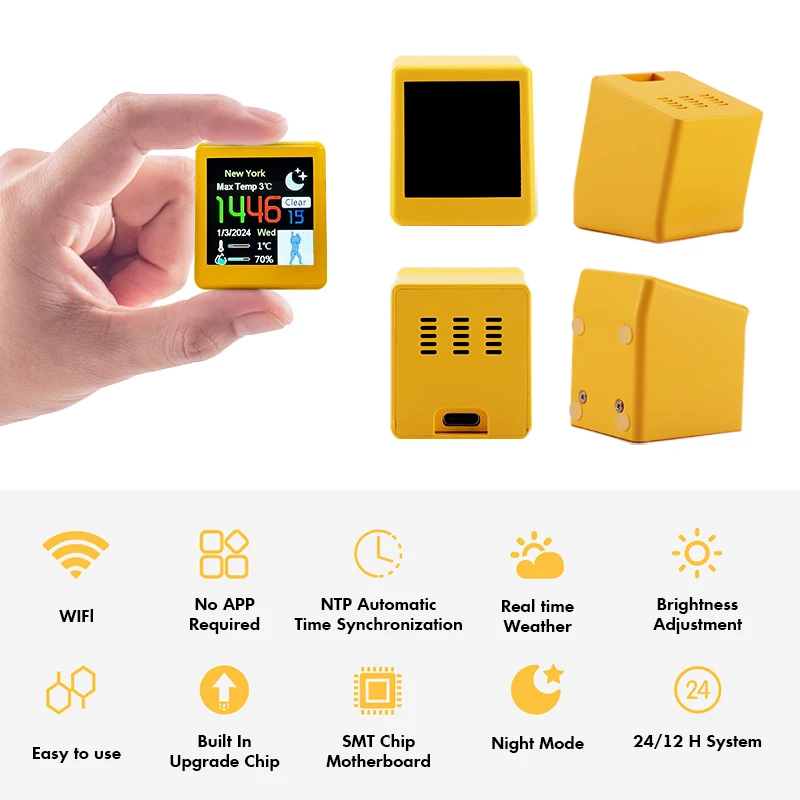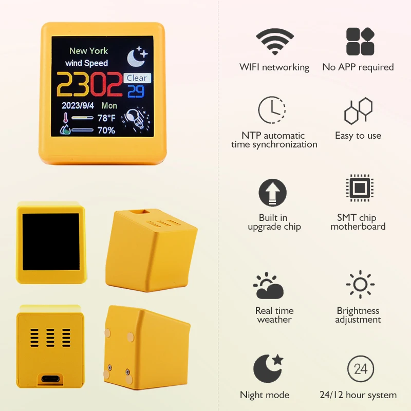 • Compact Smart Wifi Weather Station :This small, portable device is a smart Wifi weather station, offering real-time temperature, humidity, and time display. It's an ideal desktop decoration that provides practical information.
