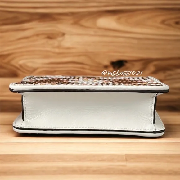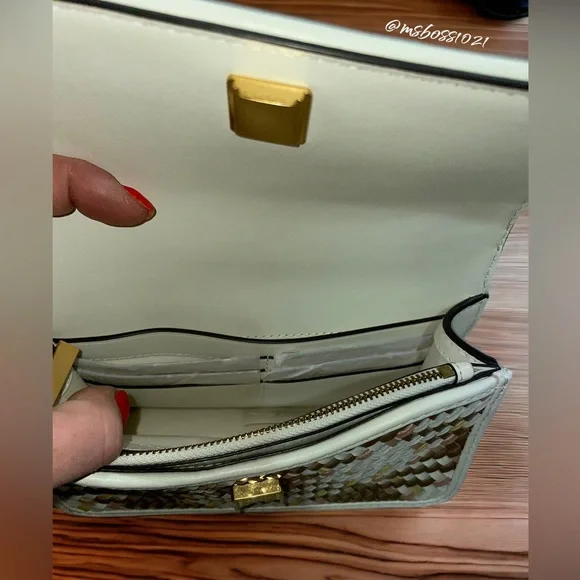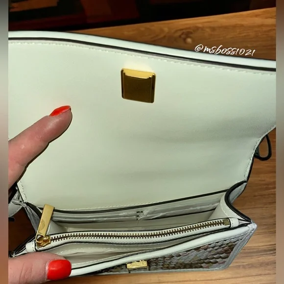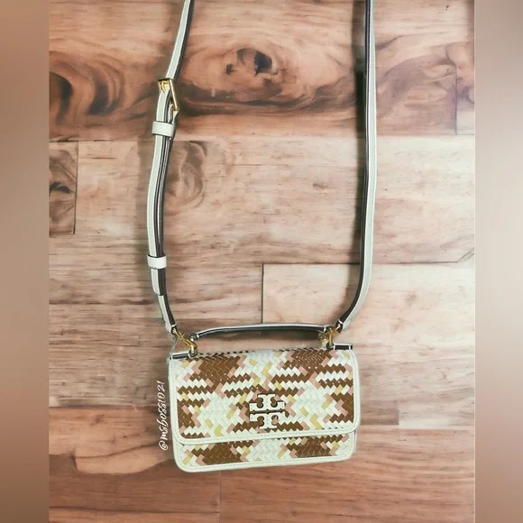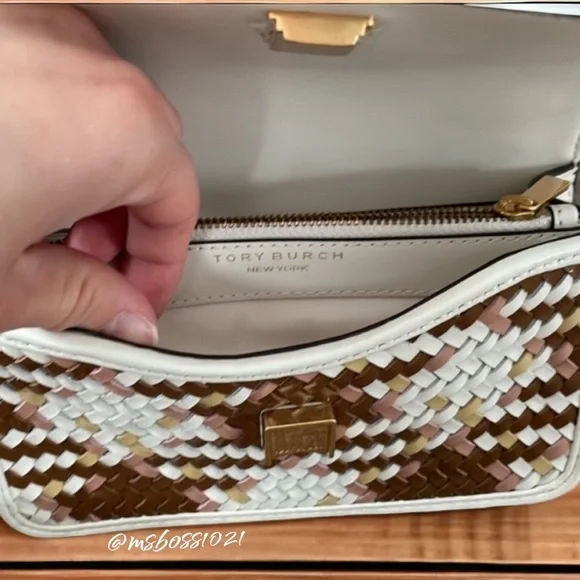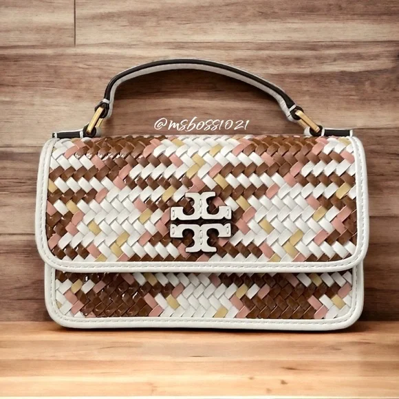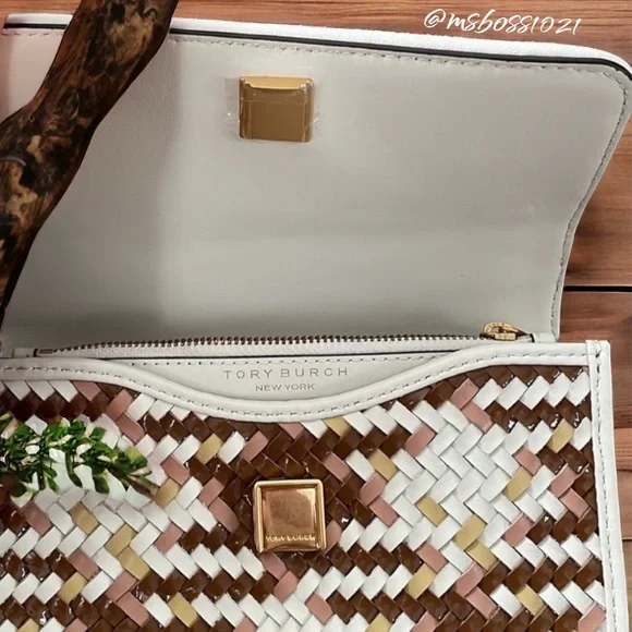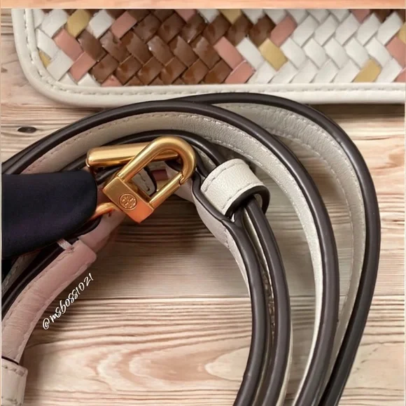 Tory Burch Top Handle BagNeutrals LeatherColorblock PatternGold-Tone HardwareFlat Handle & Single Adjustable Shoulder StrapSingle Exterior PocketTwill Lining & Dual Interior Pockets with Card SlotsSnap Closure at FrontShoulder Strap Drop Max: 24.25"Shoulder Strap Drop Min: 21.75"Handle Drop: 2"Height: 4.25"Width: 7"Depth: 2"Just a reminder,takes 20%, so please consider that when sending offers. Any offers that are less than 25% off the already reduced, listed price will not be considered. Thanks!Please look through all pics and ask as many questions as needed prior to purchase. Also, check out my closet for weekly promos and extra discounts!