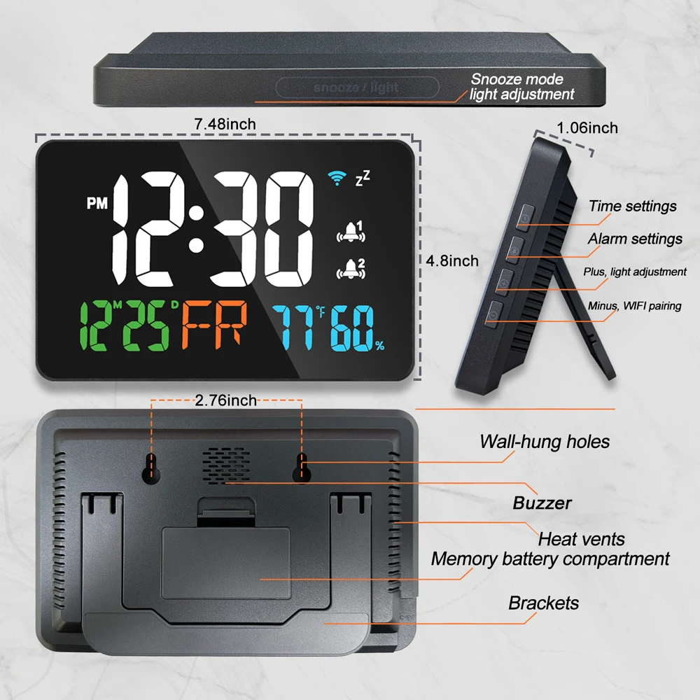 Effortless Time Management: Experience the convenience of automatic time adjustments when connected to WIFI. Set two alarms with snooze functionality to cater to your preferences. Powered via USB, this clock is versatile, whether placed on a desktop or mounted on a wall. Perfect for homes, offices, warehouses, and greenhouses.